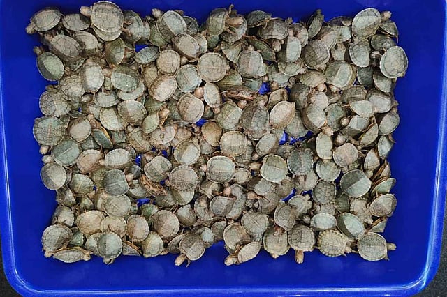 The Customs Air Intelligence Unit (AUI) seized 6,850 live red-eared sliders, a turtle species, on Friday, June 23, from the Trichy International Airport. The AUI officials arrested two persons who arrived from Kuala Lumpur in Malaysia in connection with the smuggling.