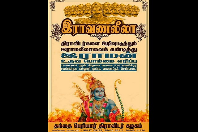 Even as several subaltern groups across the country hold ‘Mahishasur Divas’ to mourn the mythological death of Mahishasur at the hands of Durga, usually celebrated as Dussehra by some sections of Hindu society, a Dravidian Periyarist fringe group in Chennai has said that it will celebrate ‘Ravan Leela’ this year.