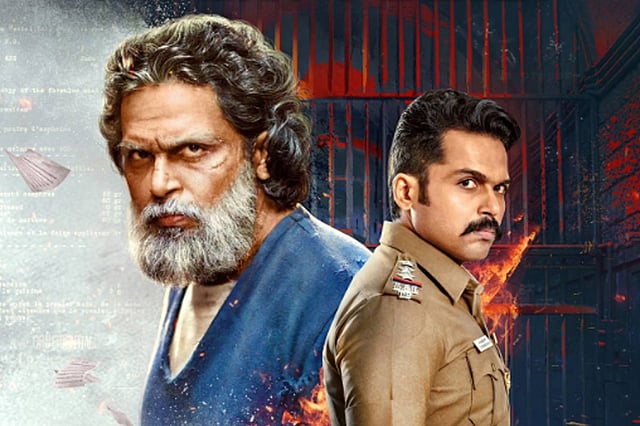 Karthi plays dual roles – RAW agent Bose/Sardar who was dubbed a traitor by the country, and his son, Vijayprakash, a publicity-hungry cop. Karthi is his jolly self as Vijayprakash but the film labours to establish his character. We’re meant to be amused by Vijaypraksh’s efforts to trend on Twitter but the insipid comedy hardly works. Munishkanth as his uncle evokes some pity chuckles but that’s all. There’s also a romance track with lawyer Shalini (Raashi Khanna) that seems to have been included only because the hero in a Tamil movie has to lose his heart to someone. The songs just make the film longer than it needs to be.