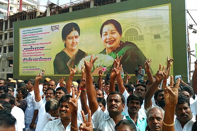 In the song, Chinamma is lionised as an incomparable leader who takes over the mantle from Amma. In the process, she becomes the personification of several high human qualities and is even compared to God a couple of times. The cadre have expressed their willingness to fall at her feet too... Fair enough, since they've said she is Amma's rebirth.