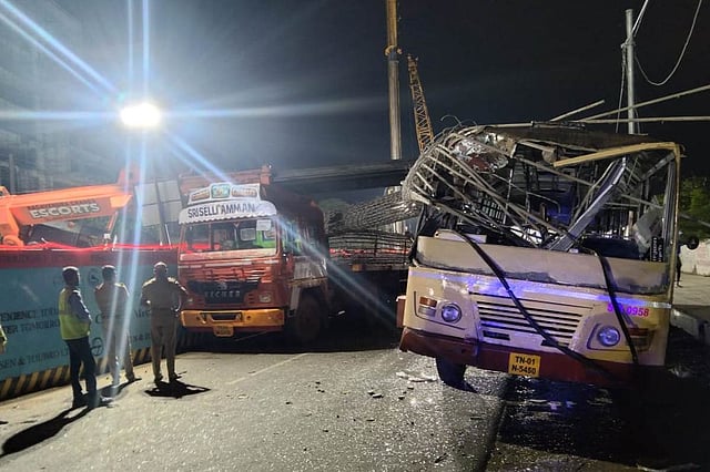 According to police sources, there were eight persons, including the driver, travelling in the MTC bus when the accident took place. The crane was set up to carry iron rods to install the giant pillars. When the crane crashed, multiple rods had fallen on the bus, injuring the drivers and the crane operator. The drivers and the crane operator sustained injuries on their legs after the accident. A case has been registered by the Koyambedu Traffic Investigation Police and a probe is underway.
