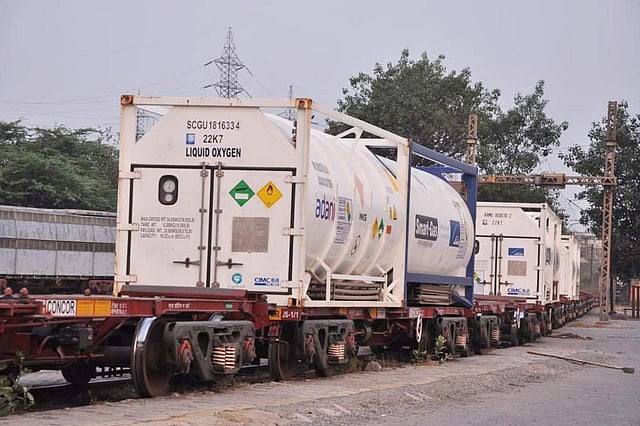 The cryogenic tankers mounted on trucks were filled with liquid medical oxygen (LMO) and loaded onto the flat wagons and transported by rail through RO-RO (Roll-On and Roll-off) service.