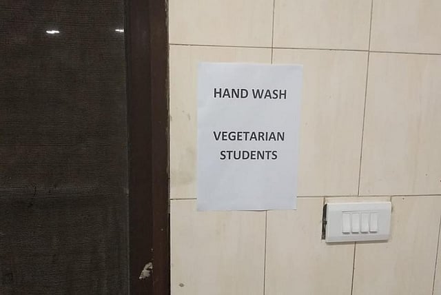 Pictures posted with the Facebook post show notices stuck on walls of the mess that lead students to vegetarian food without garlic and onion, regular vegetarian food and non-vegetarian food. One poster even points to the hand wash area meant exclusively for vegetarian students. The post titled 'Untouchability continues at IIT Madras' reads, "Upper caste households in India would usually have two entrances - one for the upper castes and the other one in the back for the ‘impure’ lower castes. A mess in IIT Madras is now having the same system. This mess has two separate entrances for vegetarians and non-vegetarians. Not just that - separate wash basins and separate utensils as well. What started as a demand for ‘pure’ vegetarian mess has become full-fledged untouchability. IIT Madras is trying to become a world-class institute, but the culture inside is still regressive in many aspects!"