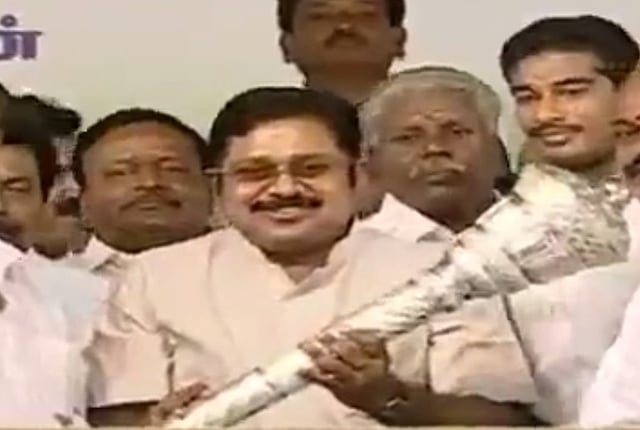In what has become an all-too-familiar routine for the AIADMK, Dhinakaran’s arrival onto the stage was a spectacle that was reminiscent of the welcome Jayalalithaa often received. While TTV’s car had flower petals thrown onto its bonnet, party supporters surrounded his vehicle as he was entered the venue to founder MGR’s songs.