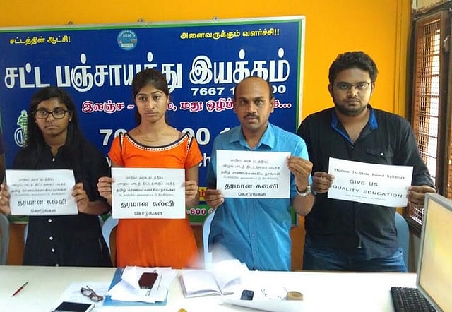"Tamil Nadu's standard of education is deplorable and our students are absolutely unable to cope outside of school. The first enemy here is the Samacheer Kalvi system. It has reduced the quality of education and made students incompetent for competitive exams post class 12," he says.