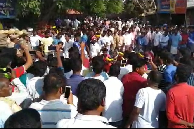 On Friday, April 19, the mob hit the streets of Ponnamaravathi, armed with longer sticks and raising slogans, forcing shopkeepers to down the shutters. The protestors also fell trees on the arterial roads connecting Ponnamaravathi, thereby blocking access to the town. Stating that the police had not acted on its promise, the men engaged in a road roko in the middle of the town.
