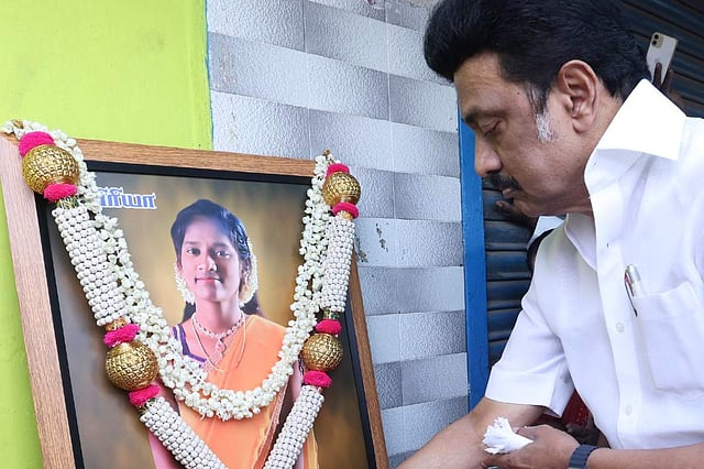 MK Stalin visited the family a day after the State Human Rights Commission took suo motu case over Priya's death and asked the Health and Family Welfare Department to submit its report regarding this incident.