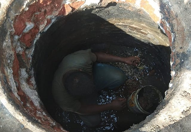 Under The Prohibition of Employment as Manual Scavengers and their Rehabilitation Act, 2013, Section 2(g) defines a “manual scavenger” as someone who manually cleans, carries, disposes of, or handles human excreta in insanitary latrines, open drains, or pits into which insanitary latrines dispose of waste, or on railway tracks or similar premises. Notably, this definition excludes sewers and septic tanks.