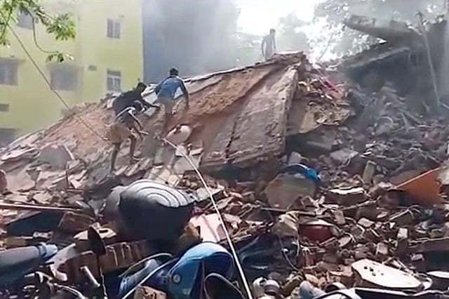 On Monday morning, the building began to shake and tiles from the walls and ceiling began to fall off. Panicking that the building was about to collapse, people in and around the block fled. Officials from the fire department and Tiruvottiyur police are at the spot and are trying to ascertain whether there are any people trapped under the debris.
