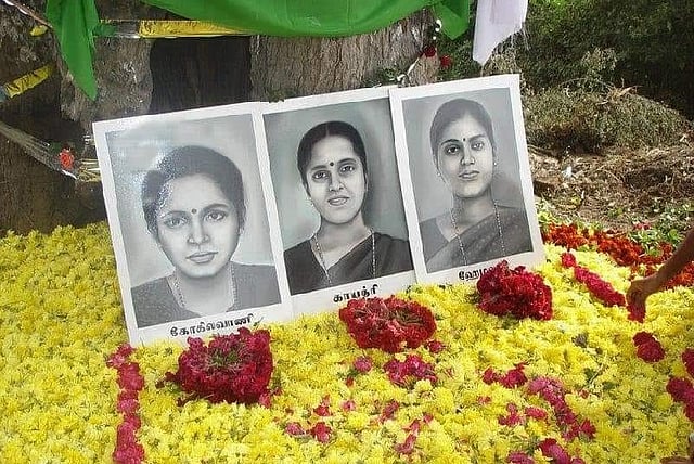 Both these men lost their daughters in a gruesome incident of arson in February 2000. Three young female students of the Tamil Nadu Agricultural University – Kokilavani, Gayathri and Hemalatha – were burnt alive in Dharmapuri district after AIADMK cadre set fire to the college bus they were travelling in. This brutality was meted out in anger over the conviction of former Chief Minister J Jayalalithaa in the Pleasant Stay Hotel case.