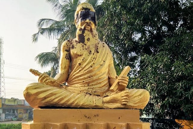 Even as social media is abuzz with the controversy around Thiruvalluvar’s robes, unidentified persons desecrated a statue of the legendary poet in Thanjavur district. The Thiruvalluvar state was smeared with black paint and cow dung.