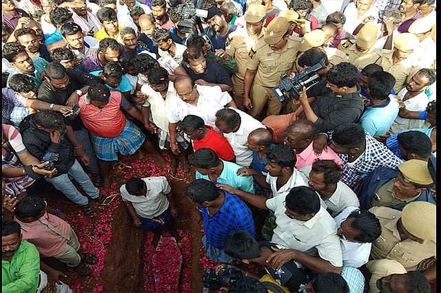Relatives grieve and hundreds come to the final resting place to say their final goodbyes to Sujith. @thenewsminute pic.twitter.com/8Vpjar7jfG