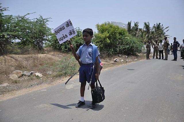 Have you ever thought a 7-year-old could protest all alone for a cause? Meet Aakash, a Class 2 student who sat near a TASMAC shop in Padur holding a banner “Kudiyai vidu, padikka vidu” (Reject liquor, allow us to study) on Wednesday. From around noon, Akash sat there for more than three hours, and protested against the liquor shop.