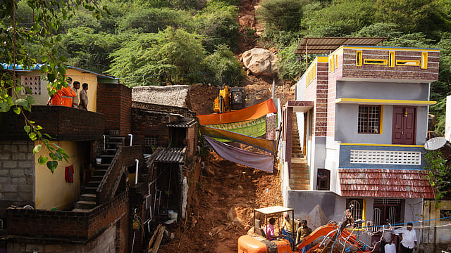 Nearly 20 houses were located in VOC Nagar under the hillock where the disaster occurred. The residents, most of who work at a brick kiln in Thandarampet, approximately 20 km away from Tiruvannamalai, allege that the rescue personnel, including the National Disaster Response Force (NDRF), arrived only by 10 pm, close to five hours after the tragedy. And while they mourn the heart-wrenching deaths of seven people including children, the Ward Councillor and district administration not only refute allegations of delayed response but are engrossed in conducting a temple festival.