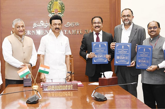 The proposed 20.56 km elevated expressway would be built at an outlay of Rs 5,855 crore, the MoU for which was signed in the state secretariat in the presence of Chief Minister MK Stalin. As per plans, local vehicles will ply between Chennai Port and Koyambedu in the first tier and in the second tier, heavy vehicles will ply between Chennai Port and Maduravoyal.