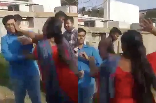 In September, news reached both Anupriya and Priyadarshini that the man who betrayed them was looking to wed a third time by registering in a matrimonial site. The duo who were living with their respective parents, visited Dinesh in his workplace in Coimbatore, along with their families. When Dinesh'a company refused to let them meet him, the two wives staged a protest outside his offiece. Soon enough, Dinesh stepped outside and this led to an altercation with the group attacking him, as seen in the video.