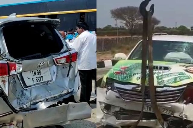 The visuals from the accident spot suggest the two cars collided with a great impact. The windshield of the car that belonged to Speaker Dhanapal, which had an image of former Tamil Nadu Chief Minister J Jayalalithaa, had developed a large crack and the front bumper also suffered substantial damage. A crane had to be called in to pull the Speaker’s car. Another visual showed that the front and the rear bumper of SP Velumani’s car was severely damaged as well. The front bumper as well as some parts of the car were seen lying on the road.