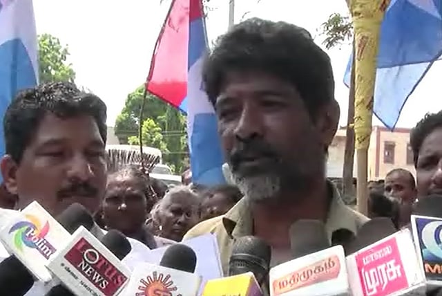 Arumugam together with a group of workers staged a protest in front of the District Collector’s office on Monday, demanding that their contracts be made permanent and that proper wages be paid.