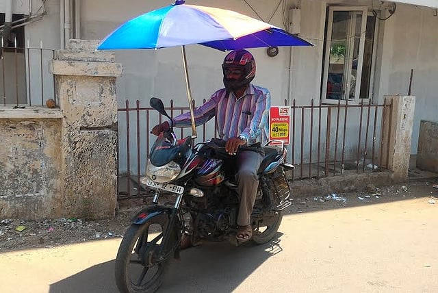 Meet Aloysius from Coimbatore who has devised the new “cool” way to win over these harsh summer days, by designing an exceptional umbrella especially for the riders of two-wheelers.