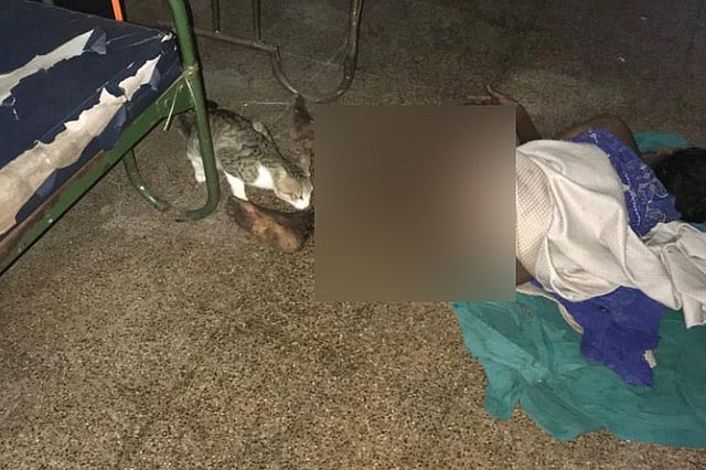 The woman had allegedly been admitted to the hospital and was not given a bed, according to witnesses at the hospital. She was undergoing treatment and had apparently passed away without anyone noticing. “She’d been lying on the floor. This cat repeatedly came and seemed to scratch her leg and was pulling her leg also, then only I told the hospital staff to come see her,” according to a woman at the hospital. “Her body was just lying there and the cat was biting her leg. Only after we told them (hospital staff) did they come and take her body away.”