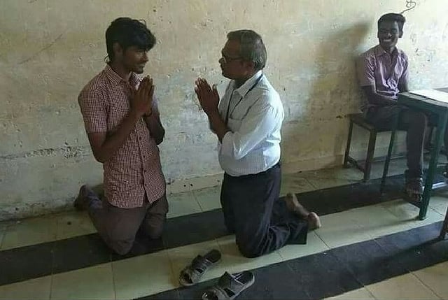 This photo that has gone viral across Tamil Nadu shows G Balu, the headmaster of a Government school in Villupuram literally begging his students to attend classes. It was taken on January 24.