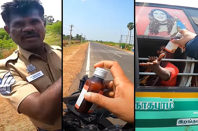 The biker was travelling from Puducherry to Kerala via Dhanushkodi when the incident occurred, in Idambadal in Ramanathapuram district. “The police officer stopped me and I was unsure what was going to happen. To be on the safe side, I began to record the interaction. He informed me about the medicines that had fallen down and asked if I could return it. I used to think incidents like these happen only in movies where a biker rides full speed to help someone. It made me feel happy as well because I was able to deliver someone their medicines,” says Arun. He adds that it was unfortunate that he could not get the name of the police officer.