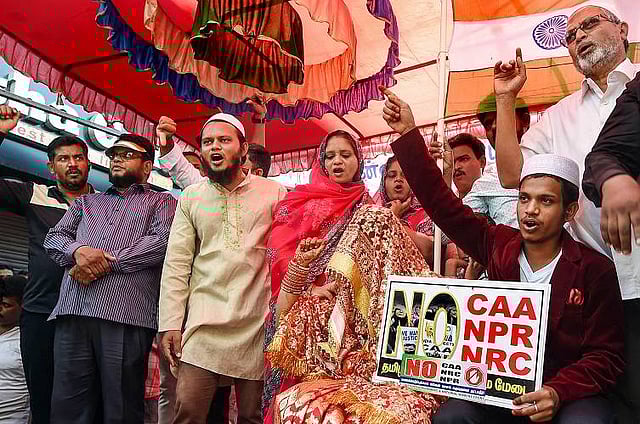 On Monday, an unconventional and lively scene unfolded in Lala Gunda in Washermenpet in Chennai, where a Shaheen Bagh-like sit-in protest against the Citizenship Amendment Act (CAA), National Population Register (NPR) and National Register of Citizens (NRC) is ongoing. A couple – Shahin Shah and Sumayya chose the protest as the venue to take their wedding vows.