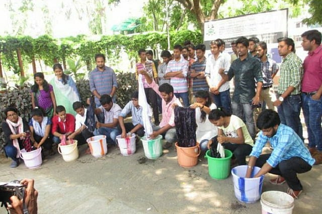 A shocking sight awaited the administration of the Sardar Vallabhai Patel International school of Textiles and Management (SVPISTM) in Coimbatore on Friday. Students who should have been studying textile management in classrooms, were busy washing clothes at the entrance of the institute.