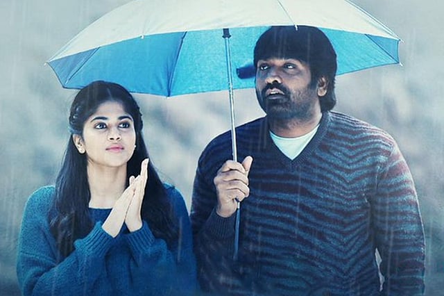 Vijay Sethupathi (popularly called VJS) plays Punithan, an Eelam refugee with a mysterious past. He’s an aspiring musician repeatedly thwarted from achieving his dreams by the network of constricting laws in India that govern refugees, the oppressive police, and an indifferent society. The actor manages a less-than-passable imitation of the Eelam Tamil dialect, so for most of the film he speaks in Tamil that is heard here in Tamil Nadu. His character is given a believable reason to do so. That’s one of the few aspects of the plot that appear at least vaguely interested in logical storytelling.