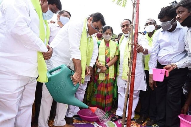 Under Telangana's Haritha Haram programme to improve green cover, 220 crore saplings were planted at a cost of Rs 5,900 crore during the last six years, a state minister said on July 1. The seventh phase of the massive tree plantation programme began across Telangana on Thursday. Minister for Municipal Administration and Urban Development KT Rama Rao, who launched the programme, described Haritha Haram as the 'third largest effort of its kind in human history' KTR, along with Minister for Environment and Forest A Indrakaran Reddy, and Minister for Education Sabitha Indra Reddy, launched the 10-day plantation drive at the reserve forest area abutting the Outer Ring Road near Amberpet Kalan on the outskirts of Hyderabad. As part of the event, the urban forest park developed by the Hyderabad Metropolitan Development Authority (HMDA) was inaugurated.