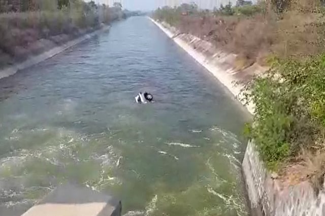 “A two-wheeler came at a high speed from a corner. My colleague tried avoiding the collision and took a sudden turn and our car fell inside the water,” Vijay Bhaskar, the survivor, told the media. The survivor was rescued by residents in the area.