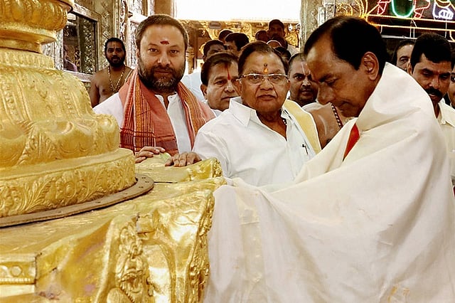 Last week, KCR had offered gold ornaments worth Rs 5 crore to Lord Balaji and a nose-stud worth Rs 45,000 to Goddess Padmavathi, at Tirupati, from the state exchequer.