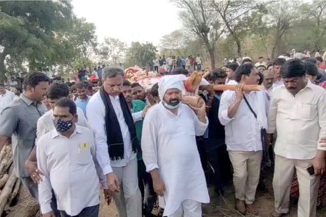 Telangana Ministers Errabelli Dayakar Rao, Satyavati Rathod and other TRS leaders, along with TRS activists and others, participated in the procession. Dayakar Rao and other TRS leaders carried the body on their shoulders. During the procession, a few people threw stones at a BSNL office in Warangal before they were dispersed, police said.