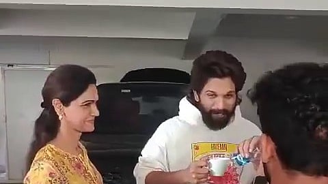 Police officers were seen taking Allu Arjun from inside his residence to the parking space. A staff member then brought him coffee and the police officers waited for the actor to drink it. He was seen consoling his wife Allu Sneha Reddy. His father Allu Aravind, brother Allu Sirish and others were also present.