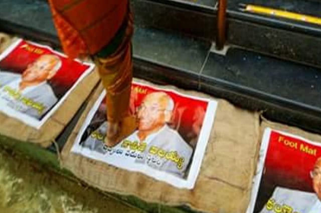 They have distributed these door-mats at temples and to shopkeepers belonging to the Arya-Vysya community to dust their feet and footwear.