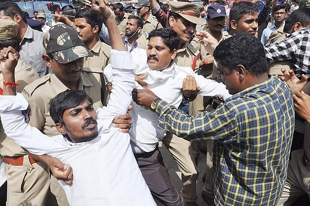 Left leaders who were detained included CPI ex-MP Syed Azeez Pasha, CPI Hyderabad District Secretary E T Narasimha and AIYF Hyderabad General Secretary Nerlakanti Srikanth.