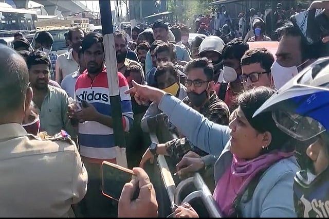 In another video that went viral, a woman commuter from Kukatpally could be seen arguing with the local police and the protesters questioning them over holding a protest and blocking roads before 11 am. The woman could be heard saying that the protests were to be held only between morning 11 and 3 pm. The woman along with fellow commuters had been waiting at the bus stop for over an hour-and-a-half for the traffic to clear. The woman claimed to have also tried pleading with TRS leaders to let the traffic through.