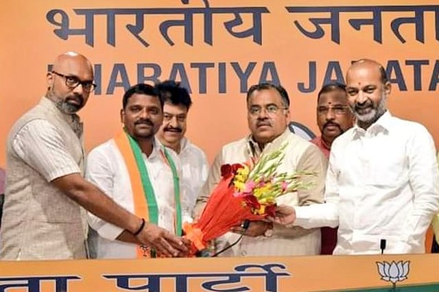 In September, while Mallanna was in prison, it became evident that he would be joining the BJP as the party backed him and attacked the TRS for imprisoning him. A month later, his wife, Mathamma, wrote a letter to BJP national president JP Nadda, complaining about the TRS jailing her husband on allegedly false complaints, and expressing Mallanna’s interest to join the BJP.