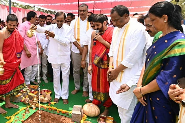 Telangana Chief Minister K Chandrasekhar Rao on Tuesday, April 26 laid foundation for three super specialty hospitals to be constructed at a cost of Rs 2,679 crore. To be called Telangana Institute Medical Sciences (TIMS), these super specialty hospitals are coming up in Alwal, Gaddiannaram and Erragadda. CM KCR along with state Health Minister T Harish Rao travelled to the three different areas in Hyderabad to perform 'bhumi pooja' for the hospitals, which will provide free healthcare services.