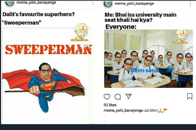 An Instagram page called Meme Yahi Banayenge, which has over 1,300 followers, has been doing the rounds among netizens. The page features 117 memes, which smack of hatred against Dalits, Muslims and Dr BR Ambedkar.