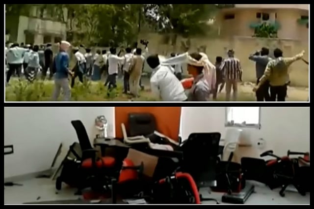 Visuals show a number of farmers smashing the entire interior of the office to pieces.