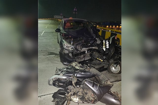 The accident took place on the newly opened flyover at Biodiversity park, Gachibowli at around 1 am. Due to the impact of the crash, the two victims--N Vamsi and V Praveen (both aged 22)--fell from the flyover.