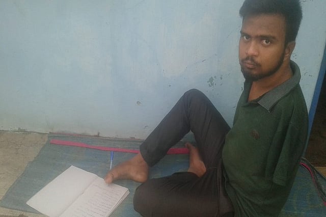 The 22-year-old was born with underdeveloped hands but has learnt to write and type using his feet. He hails from Kaghaznagar Komaram Bheem district in Telangana and is presently pursuing his post graduation in Acharya Nagarjuna University through distance education.
