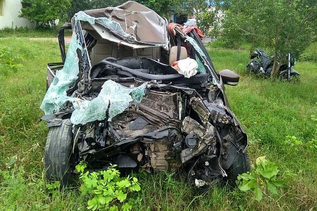 The car was crushed in the accident, and the five were stuck inside. Damera police rushed to the spot and shifted them to Mahatma Gandhi Hospital in Warangal for the postmortem.