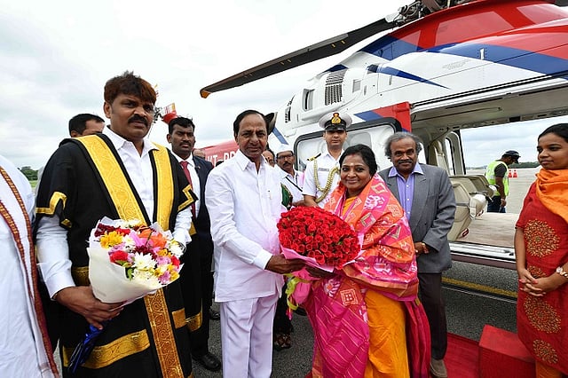 Former Tamil Nadu BJP Chief Tamilisai Soundararajan was sworn in as the Governor of Telangana on Sunday morning at the Raj Bhavan in Hyderabad. She took charge in the presence of Telangana Chief Minister Chandrasekhar Rao, Tamil Nadu Deputy Chief Minister O Panneerselvam and Ministers D Jayakumar and Thangamani.