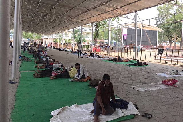 “It is depressing that we have to stay like this,” says 27-year-old Kumar. Kumar is a resident of Srikakulam, Andhra Pradesh. He visits Hyderabad every three months to do manual labour. He makes some money and goes back home. However, owing to the national lockdown in place to fight the COVID-19 pandemic, Kumar hasn't been able to go home. He was staying at a lodge in Narayanaguda, Hyderabad. After exhausting his money, he was forced to sleep on the roads like the other workers before the police shifted them to the camp on March 23.