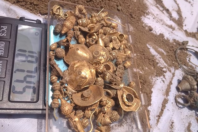 Along with gold and silver, 6.5 grams of ruby also was found, and the copper pot weighed 1.200 kilograms, authorities said.