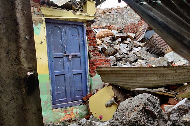 On Tuesday evening at around 8.30 pm, four houses adjoining each other in Hyderabad’s Ghouse Nagar -- a crammed colony accommodating working class people--were destroyed after a huge compound wall erected behind these houses atop a hillock came down due to heavy rain. The colony is located in the interiors of Bandlaguda.