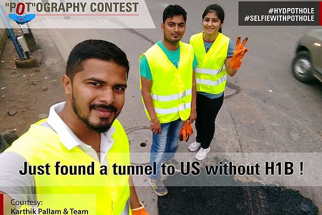Thank you for overwhelming response for #Potography Contest. Here are some entries! #HydPothole #SelfieWithPothole #Hyderabad pic.twitter.com/utV3Vu4gDT