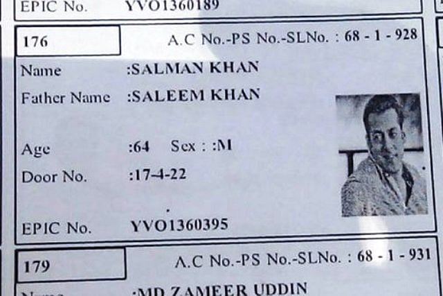 A slip -- Elector's Photo Identity Card No. YVO1360395 -- had the name of the elector as Salman Khan and a picture of the 50-year-old actor.